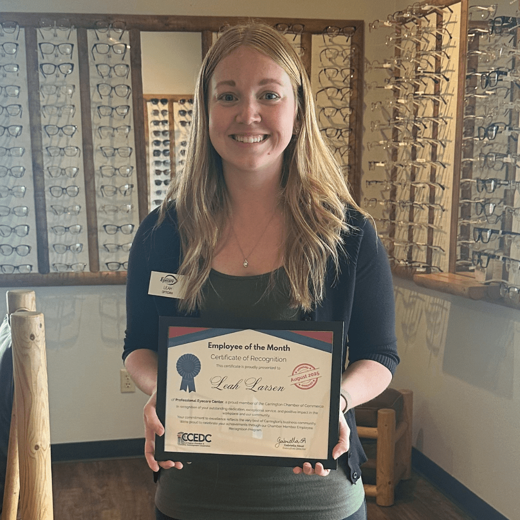 The Carrington Chamber & EDC is proud to recognize Leah Larsen of Professional Eyecare Center as our August 2025 Employee of the Month.